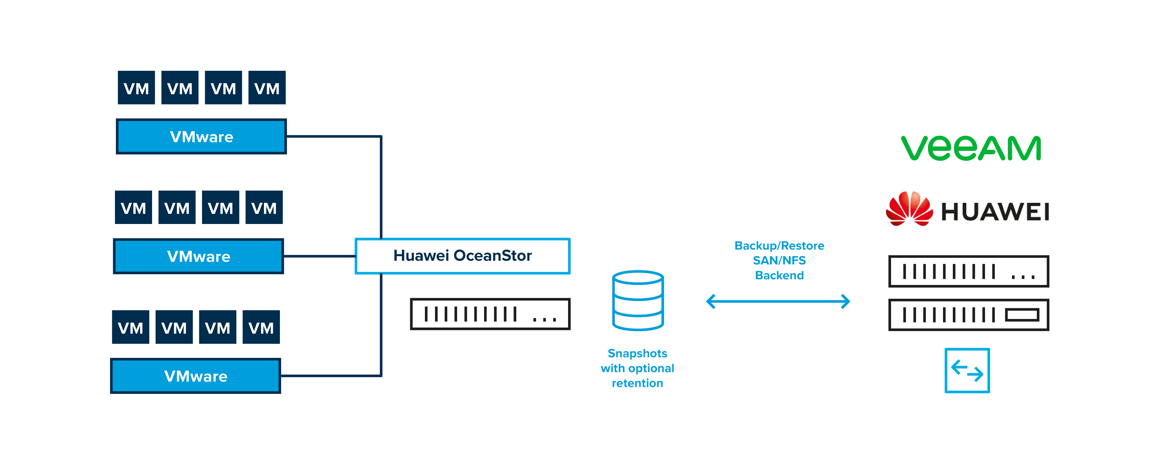 W odpowiedzi na te nowe wyzwania biznesowe i techniczne firma Veeam nawiązała współpracę z Huawei i innymi czołowymi dostawcami pamięci masowej, aby dostarczać zintegrowane rozwiązania do ochrony i przechowywania danych. Obecnie klienci posiadający produkty OceanStor mogą wykorzystać integrację rozwiązań Veeam z pamięcią masową w środowiskach VMware, aby zyskać wyższy poziom inteligentnego zarządzania danymi w centrum danych oraz polepszyć wartości wskaźnika RTPO (docelowy czas i punkt odzyskiwania).